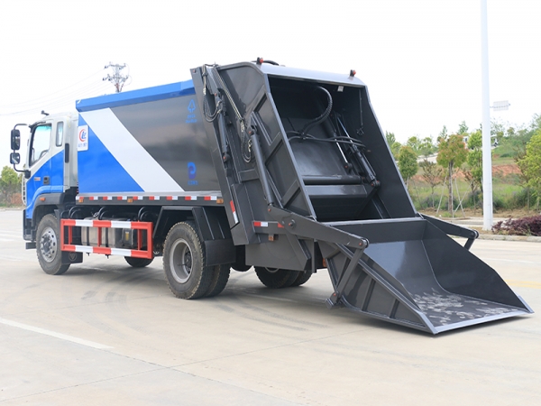 壓縮式垃圾車工作裝置:不同用戶可根據不同的垃圾搜集方式,選裝不同的翻桶(斗)機構:翻標準垃圾鐵桶ZBT59003-88(300L)、塑料垃圾桶(240L)、塑料垃圾桶(660L)、隨車小垃圾斗(800L)、密封遮蓋式垃圾斗(1400L)、擺臂垃圾斗(3000L)。