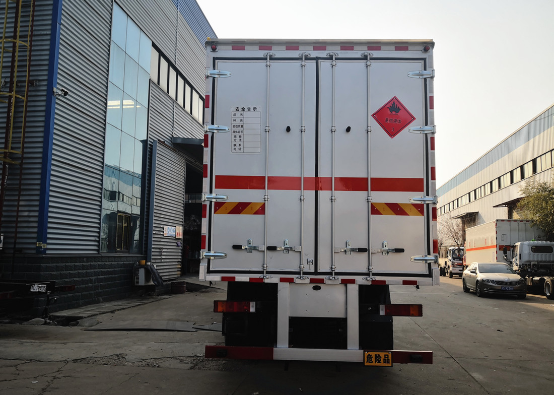 該車為危險品運輸車.該車頂部封閉,不可開啟.隨底盤選裝平頂駕駛室;選裝駕駛室前面罩;高頂駕駛室頂部氣喇叭為選裝件;駕駛室前角擾流板為選裝件,蓄電池及儲氣筒可選裝右置.運輸具有**容器包裝的介質:《**危險廢物名錄》中的含廢油物質,含鉻廢物,含銅廢物,廢棄電池,危險貨物類項號:9.廢物類別: HW08,HW21,HW22,HW49.后部安裝液壓尾板,液壓尾板收起水平長度300mm,尾板重量為550kg,側、后防護材料:Q235,連接方式均為焊接連接,后防護截面高120mm,截面寬50mm,下邊緣離地高490mm;選裝后部不帶尾板樣式時后防護裝置材料:Q235,連接方式為焊接,后防護截面高120mm,截面寬50mm,下邊緣離地高490mm.選裝側開門型式及位置;廂體選裝開百葉窗,選裝后部樣式.僅采用排氣管前置,子午胎,限速裝置,**制動裝置和前盤制動器的底盤;限速80km/h.安裝具有衛星定位功能的行駛記錄儀;ABS型號/生產廠家:ABS 8/東科克諾爾商用車制動系統(十堰)有限公司.發動機型號及油耗值(L/**km)對應關系為: DDi75E350-60/38.1.后軸僅采用空氣懸架.轉向輪裝備輪胎爆胎應急防護裝置. |