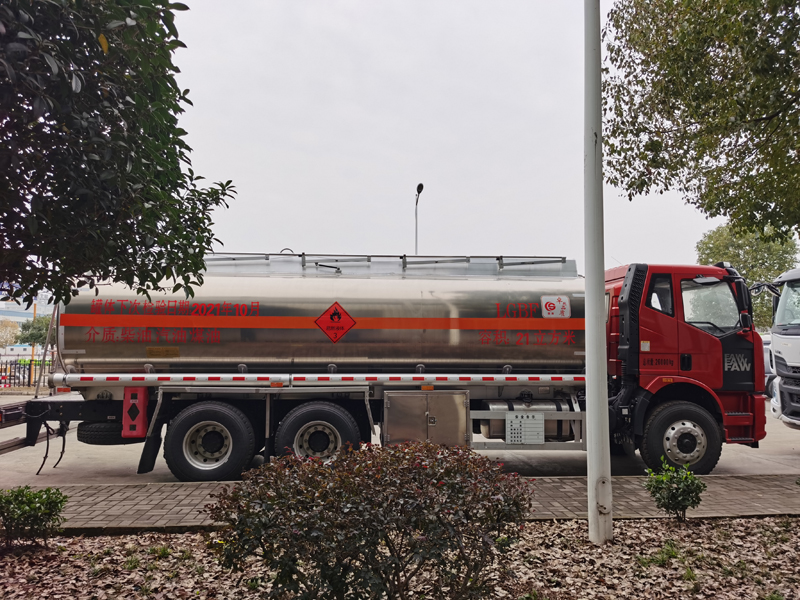 上裝配置:汽油、柴油、煤油介質:公告容積為21方,加油機安裝在工具箱內,罐體**容積為21.6方. 整車尺寸(mm):10110×2550×3490. 總質量26000 Kg,整車額定載質量:16670/16605 Kg,整備質量:9200Kg; 罐體尺寸:(長×長軸×短軸) (mm): 7200×2300×1600.罐體常配為單倉采用5182鎂鋁合金制作,罐體厚度大于等于5MM,帶山東齊魯油泵,泵箱配歐標拉手鎖,一個單呼吸閥的歐標罐口、一個海底閥,兩個自流閥,歐標一套(含歐標罐口,海底閥,油氣回收,防溢流探桿,下裝油口);C:可選裝大流量加油機(上海柏萊稅控加油機、三金稅控加油機、中升稅控加油機)帶15米自動回位卷盤,兩根罐體等長輸油管、兩個滅火器,一個防火帽,靜電卷盤、安全告示鐵牌、工具箱、全車歐式鎖、牌照燈、車尾拖車鉤開孔、其余標配。易燃液體貼“易燃”標,貼反光條、反光帶,罐體尾部反光板、安全告示。